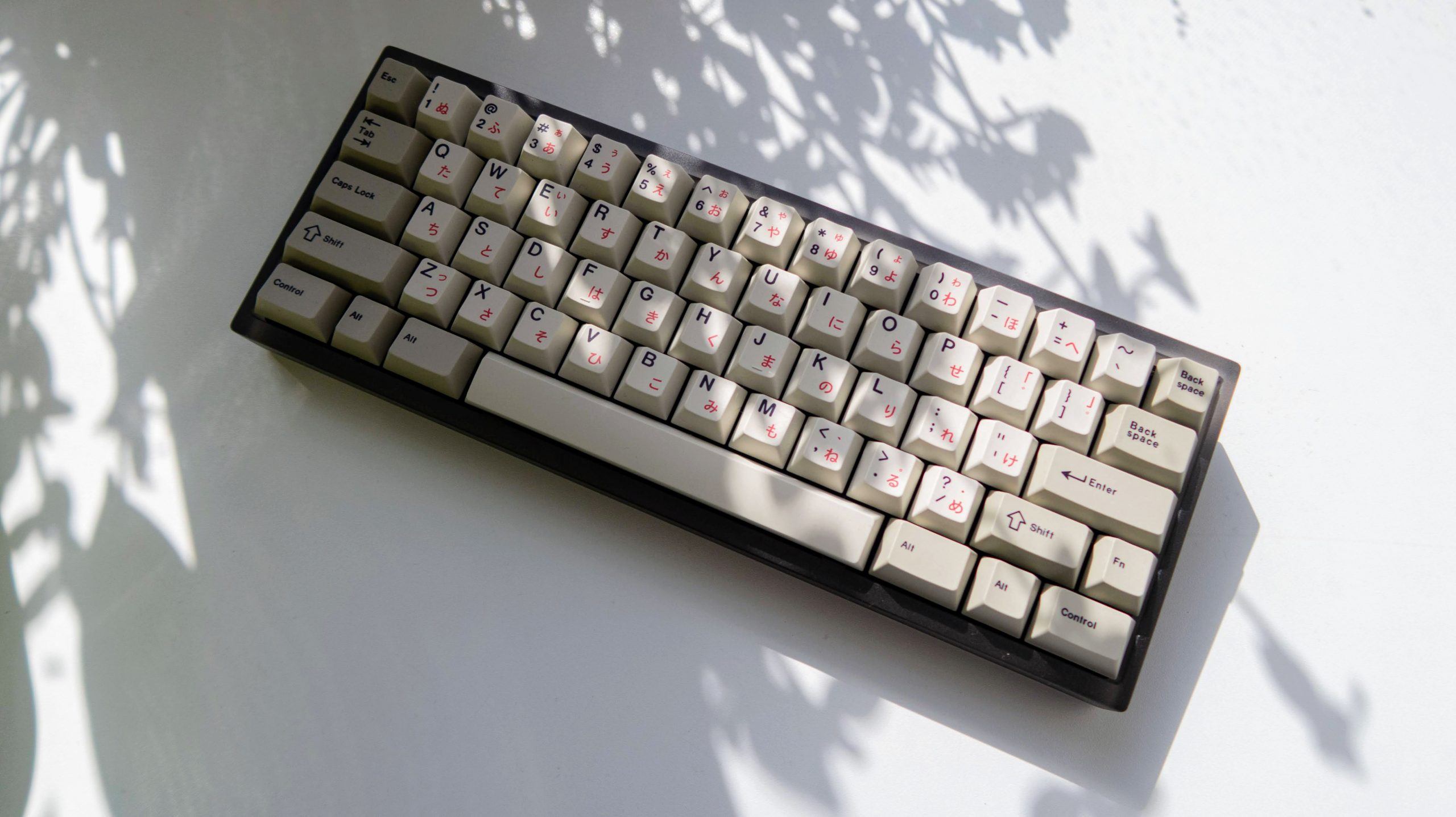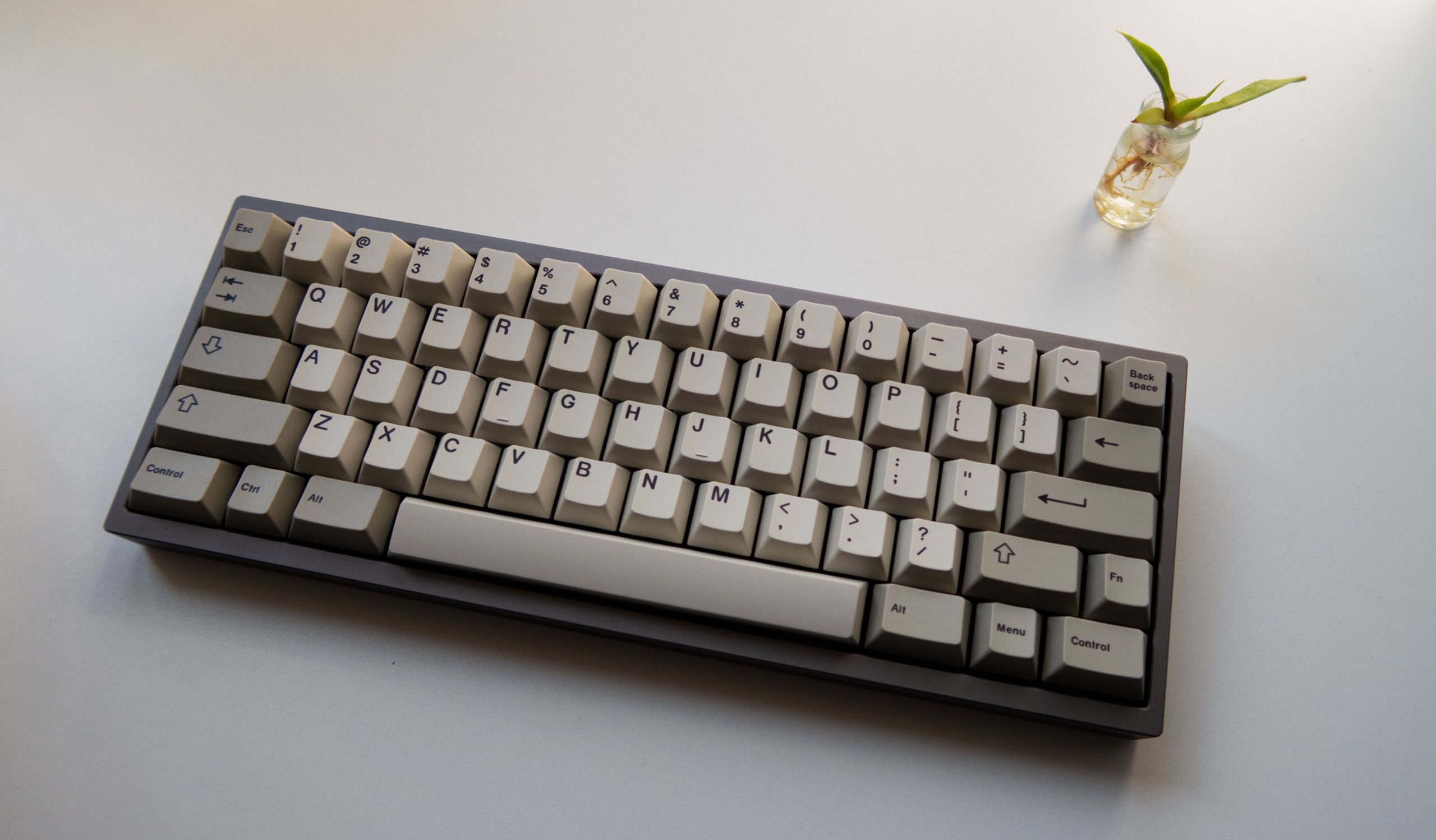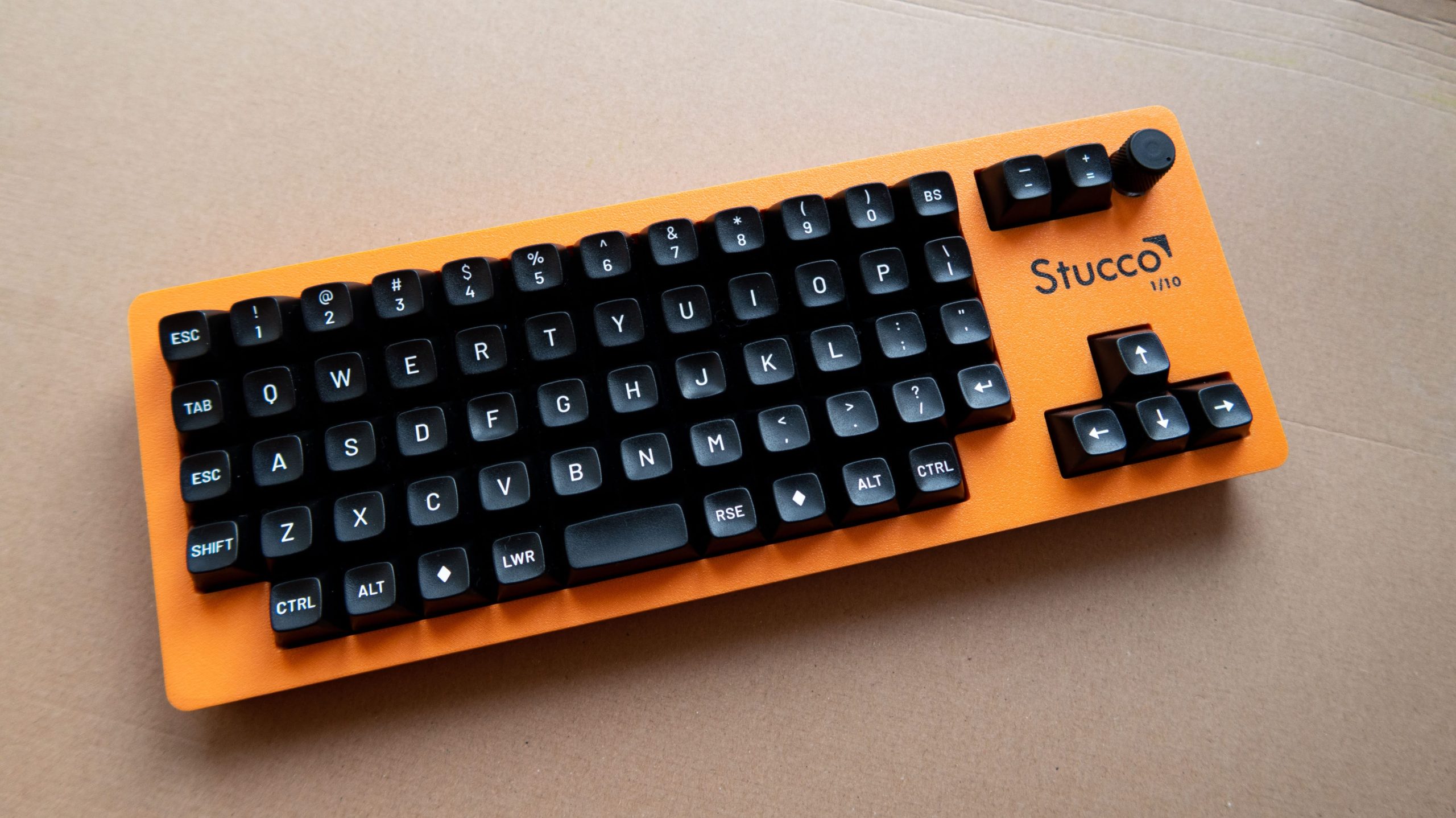 I made this built with some stock aflion tropical waters and put them in a Stucco{15}, added a POM plate and some old durock v2 stabs. No tape…