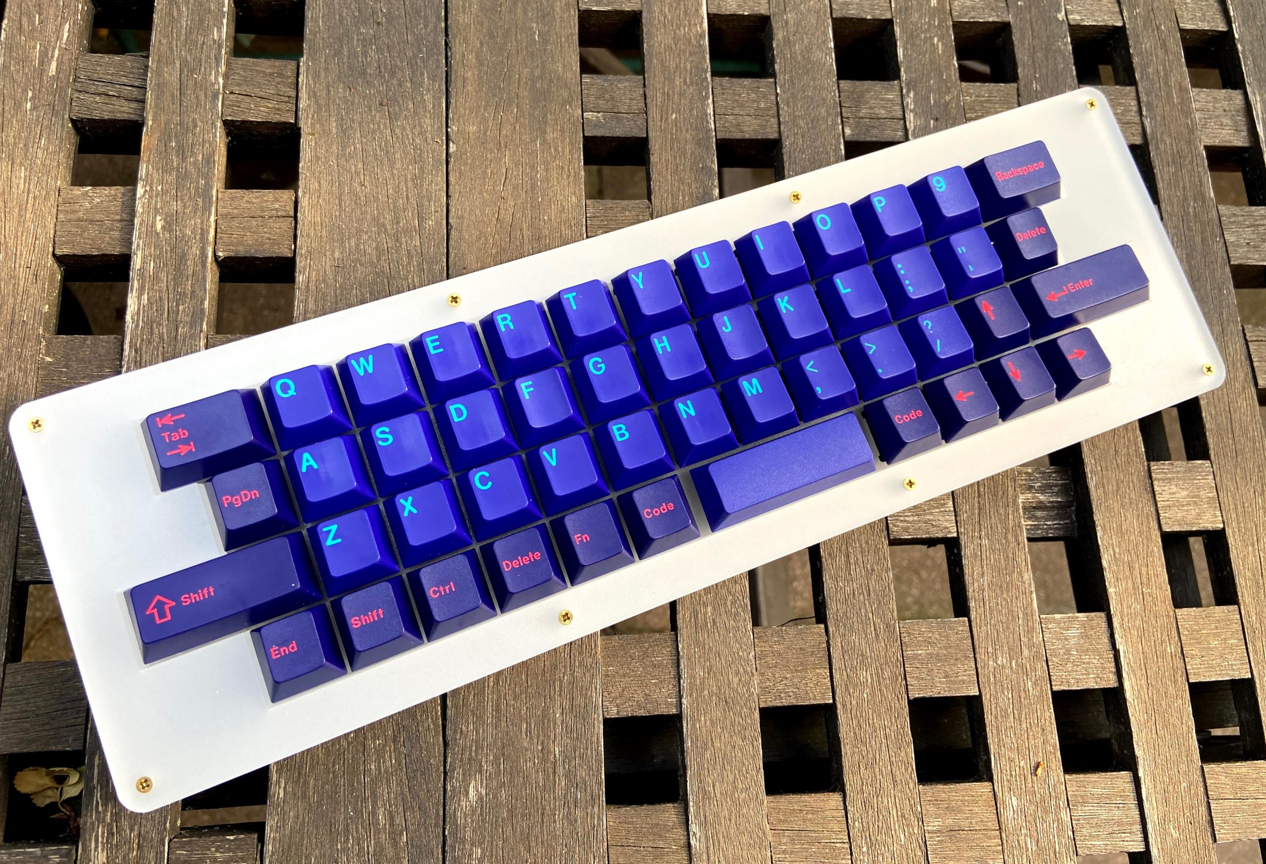 TL;DR: handwired with a Pro Micro hotswapable custom 40% ortholinear layout custom layered frosted acrylic case (3mm layers) GMK Set compability build with Gateron Yellow KS-3 lubed and…